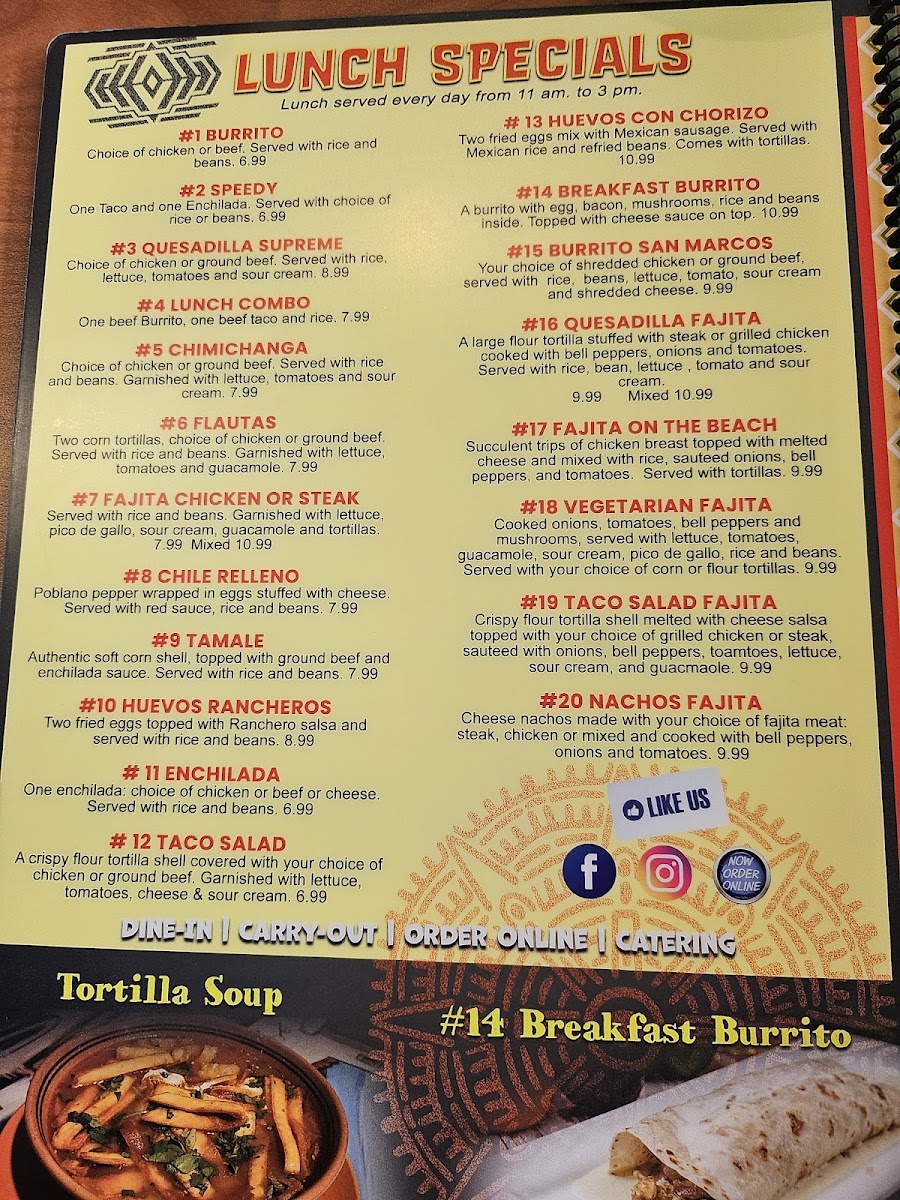 Two corn tortillas wrapped around your favorite filling, deep fried to a golden brown, and served with lettuce, tomato, sour cream, rice and beans.