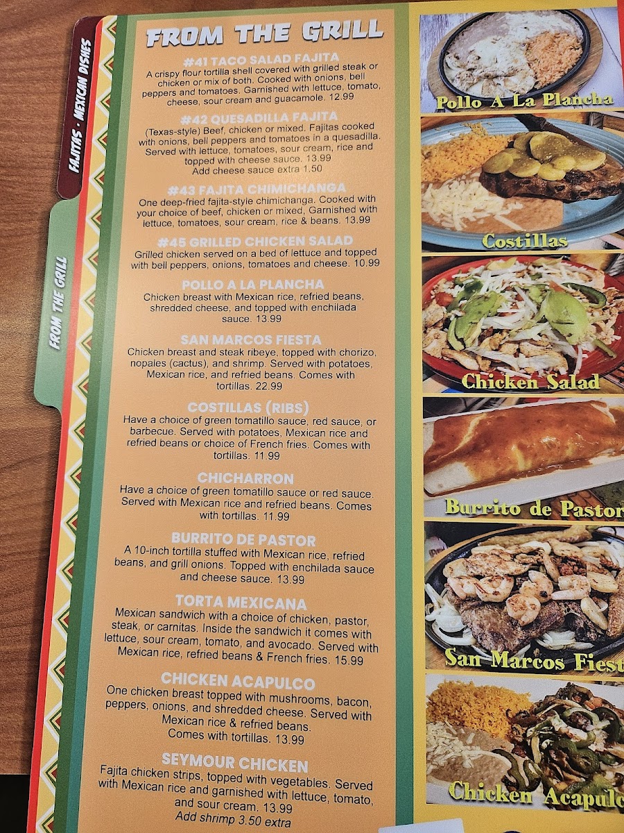 Tender strips of marinated chicken breast or steak served with sautéed onions, bell peppers, and tomatoes, garnished with lettuce, pico de gallo, and sour cream, served with rice, beans & tortillas.